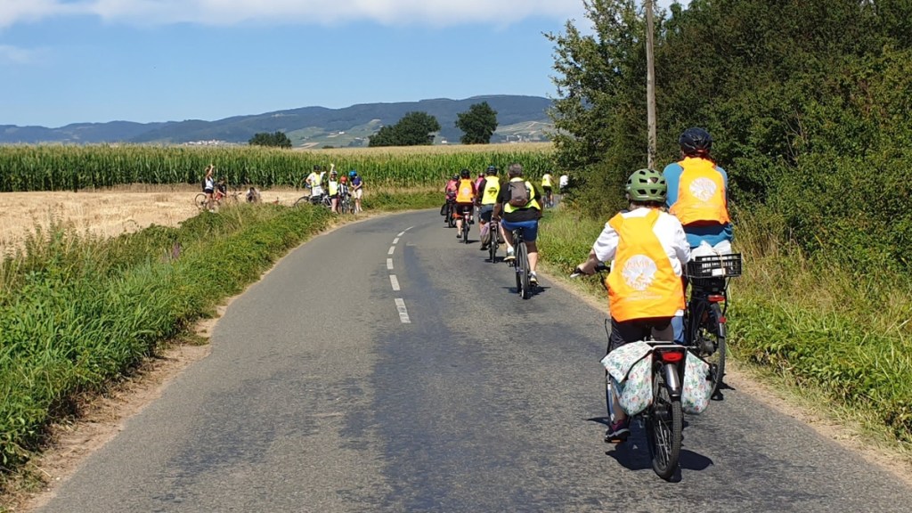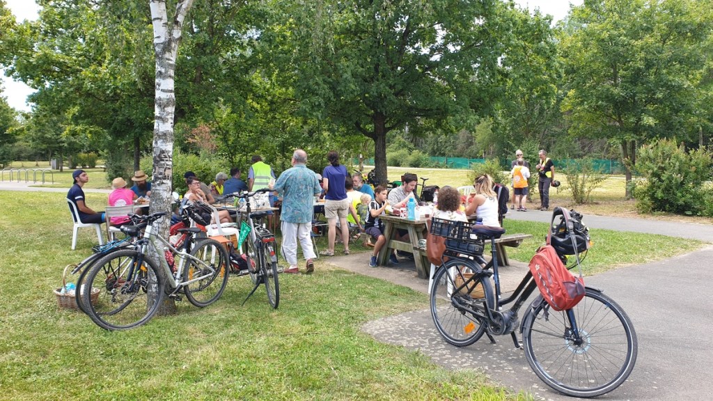 Samedi 9 juillet, deux groupes de cyclistes, l’un parti de Villefranche et l’autre de Belleville se sont rejoints pour un pique-nique convivial au local VUViB de la Voie Verte à Saint-Jean d’Ardières. Nous étions une bonne trentaine, dont des enfants courageux.